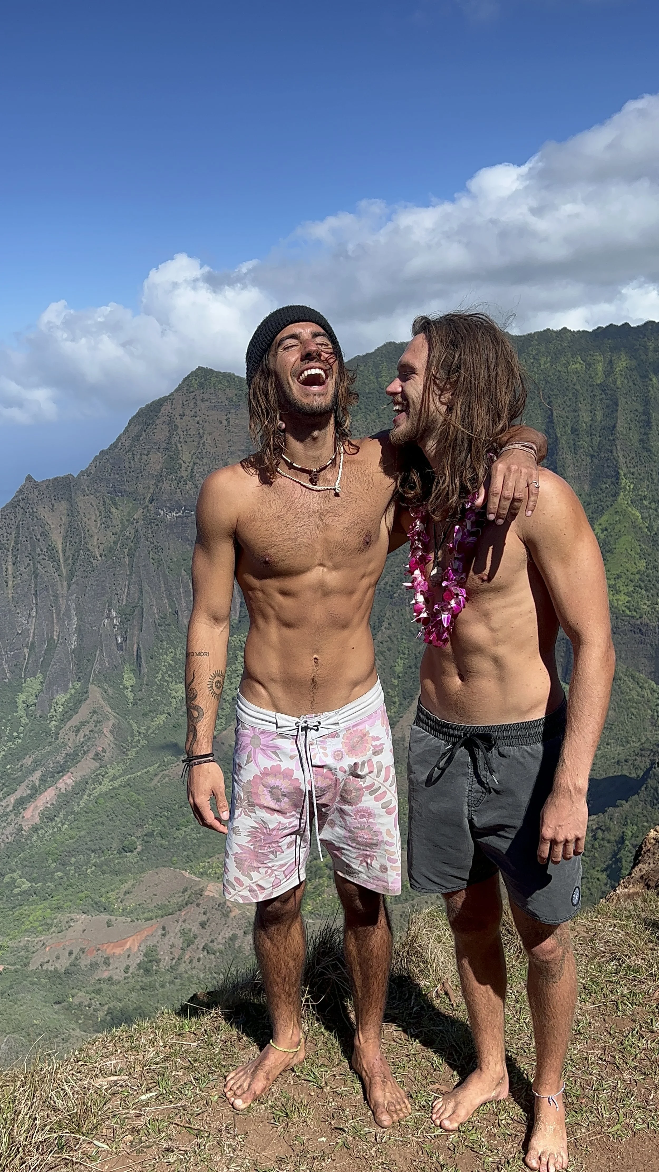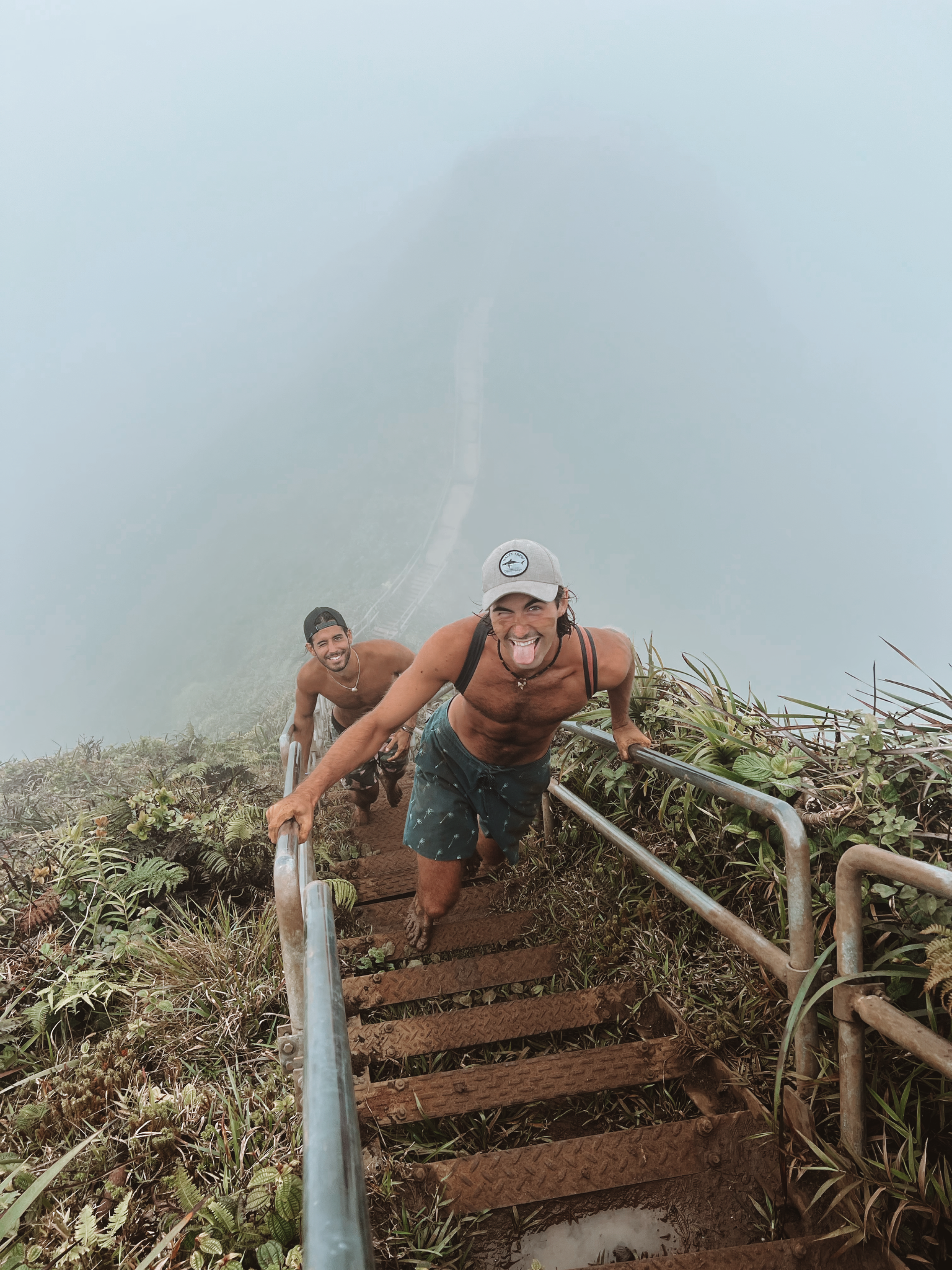 Tarzan showing Frank and Kay about strawberry guava’s on the top of a ridge in Mānoa.